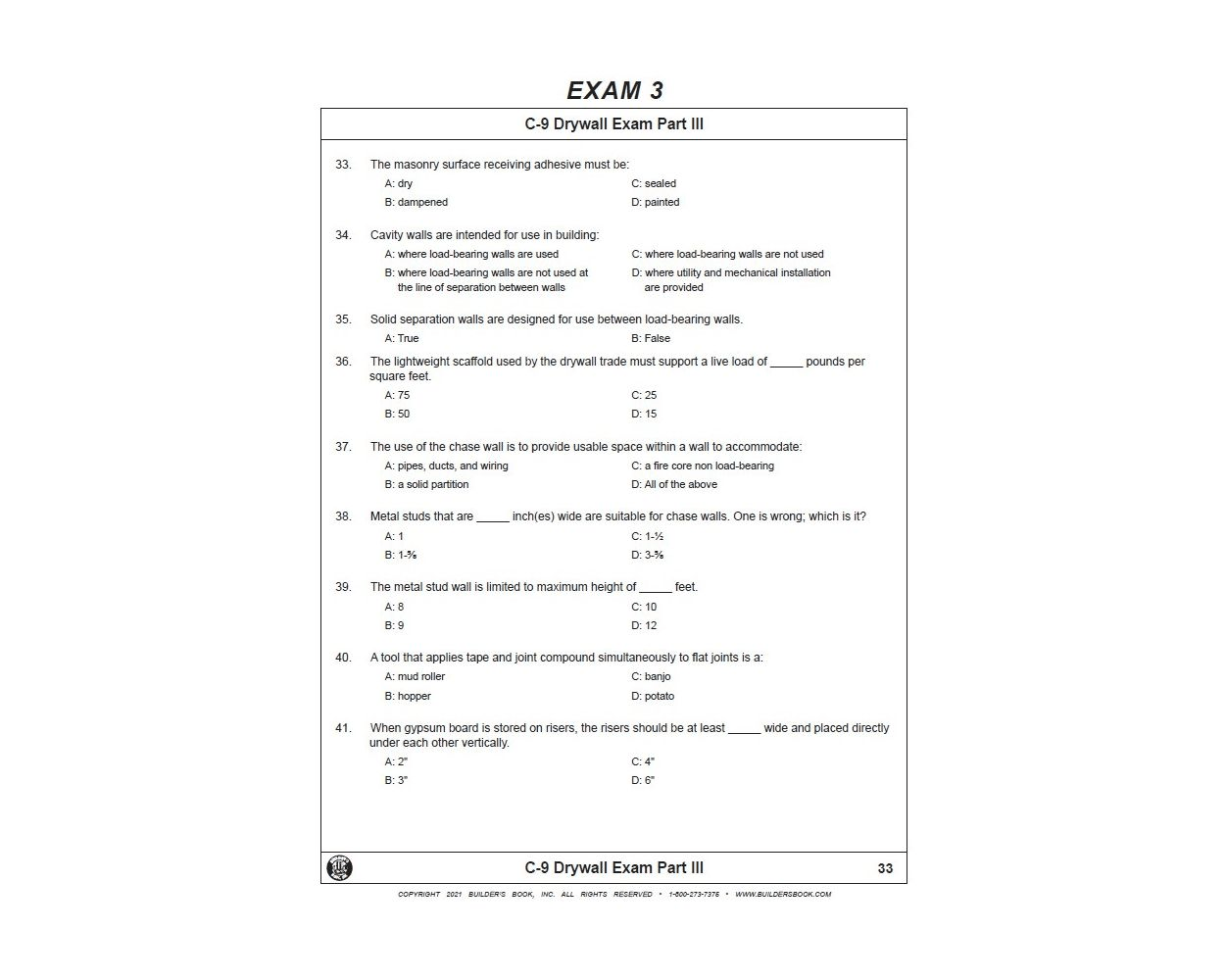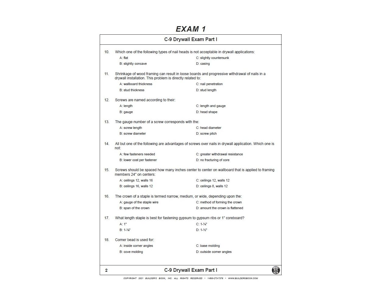 Drywall License Examination (C-9) – QuickPass® Interactive Study Software